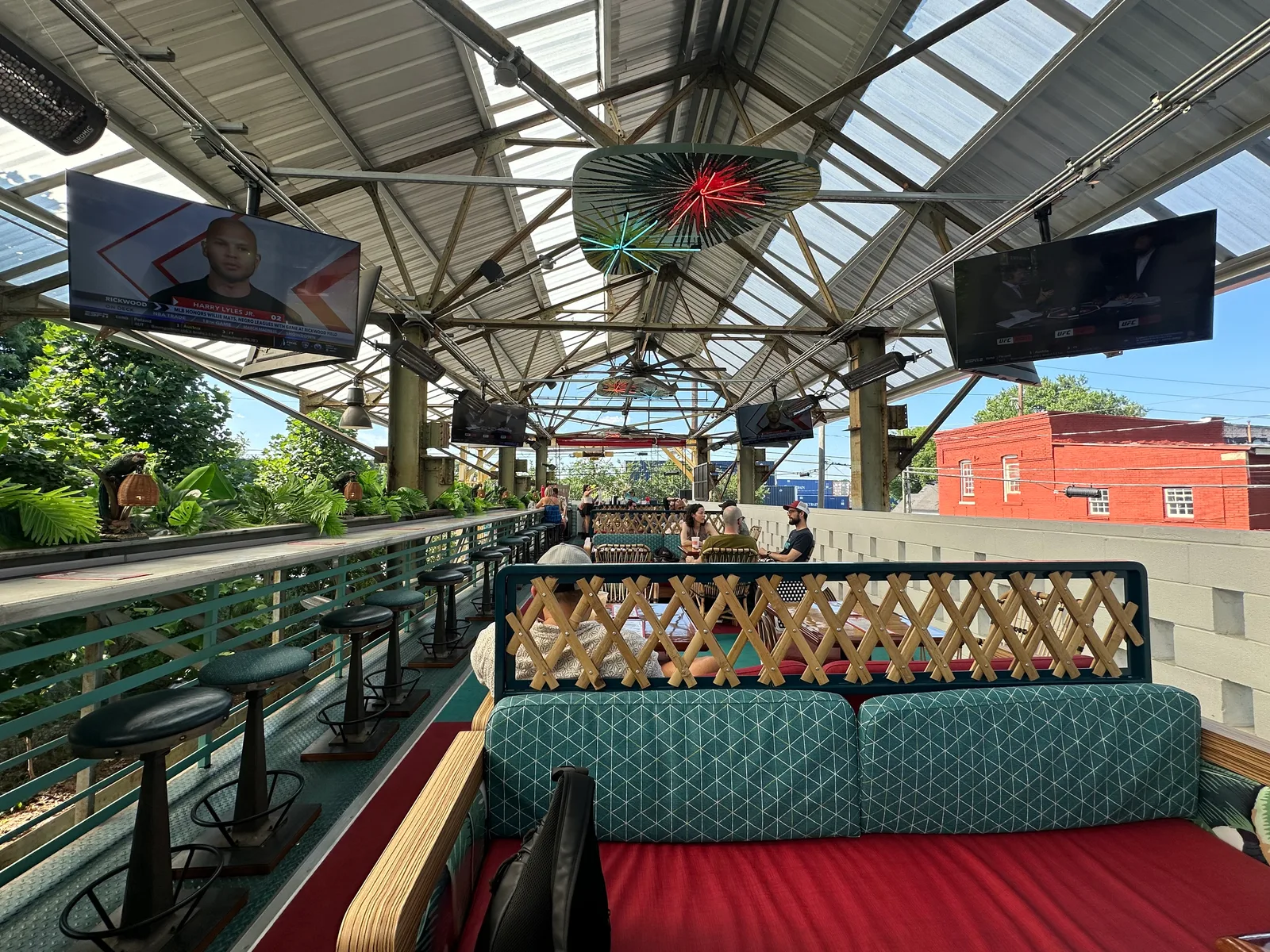 Wednesdays they've got $6 margaritas and there's plenty of room to just sit outside and enjoy the nice weather but be in the shade and out of the rain. There's also music bingo on Wednesday nights.